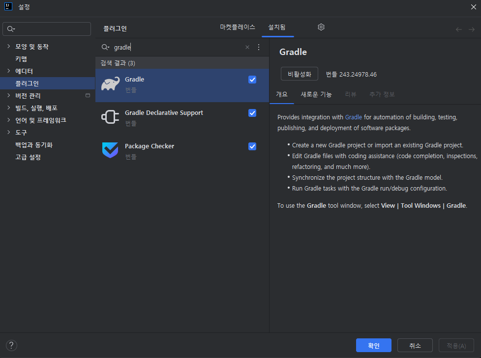 | 유연성 | 그레이들의 빌드 스크립트는 선언적 설명과 스크립트 설명의 조합으로 작성되기 때문에 커스터마이징이 용이합니다 |