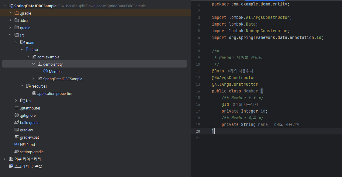 스프링 데이터 JDBC 프로그램 생성하는 방법